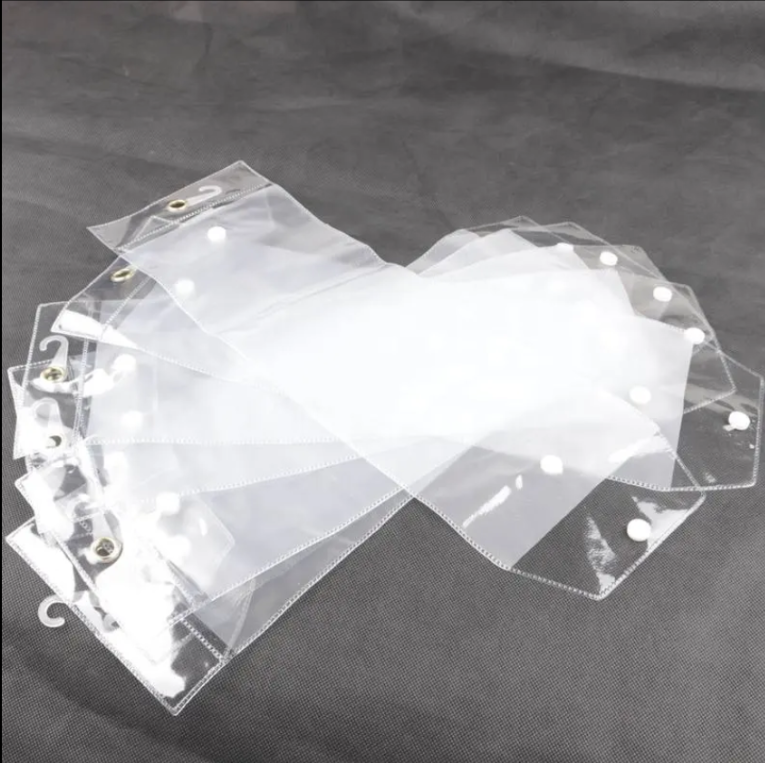 Designed specifically for hair extensions and hairpieces, this clear PVC hanging bag is a premium retail solution. The snap button closure ensures secure packaging, while the high-transparency PVC offers full product visibility. Equipped with a plastic hook for easy hanging, it enhances in-store displays and protects products during shipping.