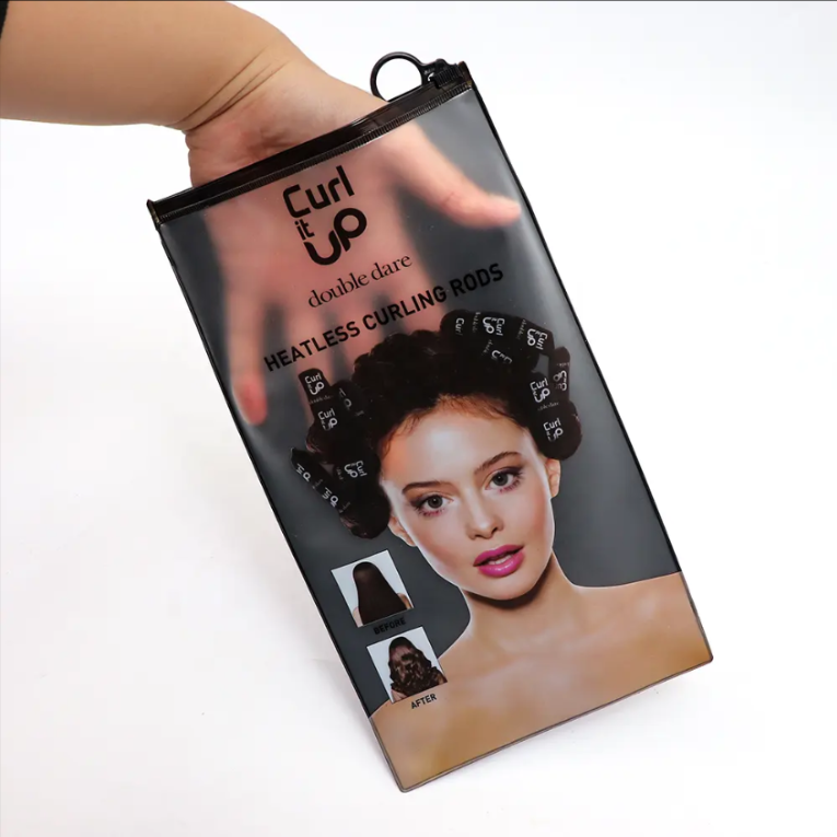 Made from high-quality PVC, this zipper bag supports full customization with brand visuals and product information. Ideal for packaging wigs, hair bundles, and styling tools. Zipper closure with an optional hanging ring enhances display convenience and reusability.