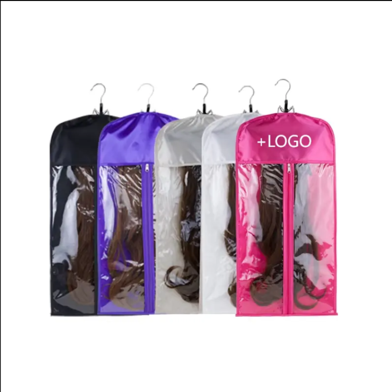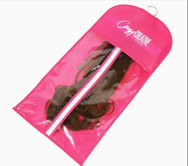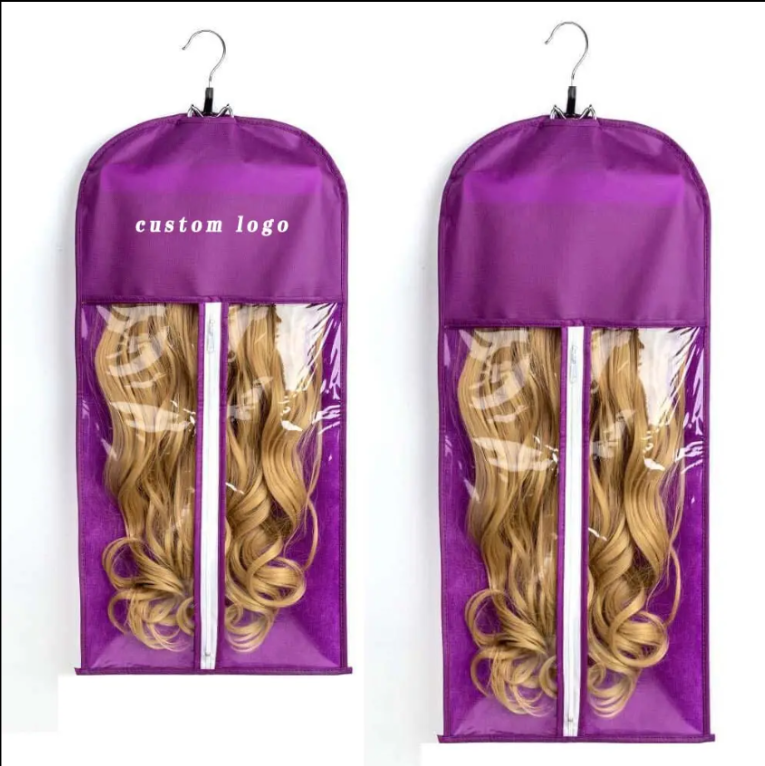 This hanger-style storage bag is designed for both elegant display and practical use. Made with non-woven fabric and a transparent PVC window, it protects and organizes wigs while showcasing them clearly. Suitable for salons, hair brands, or personal storage.