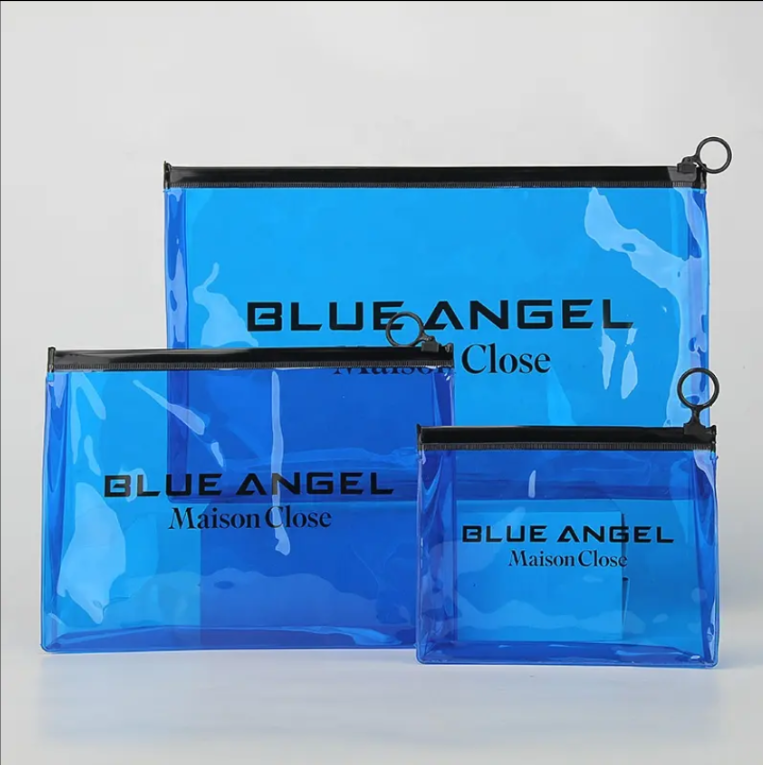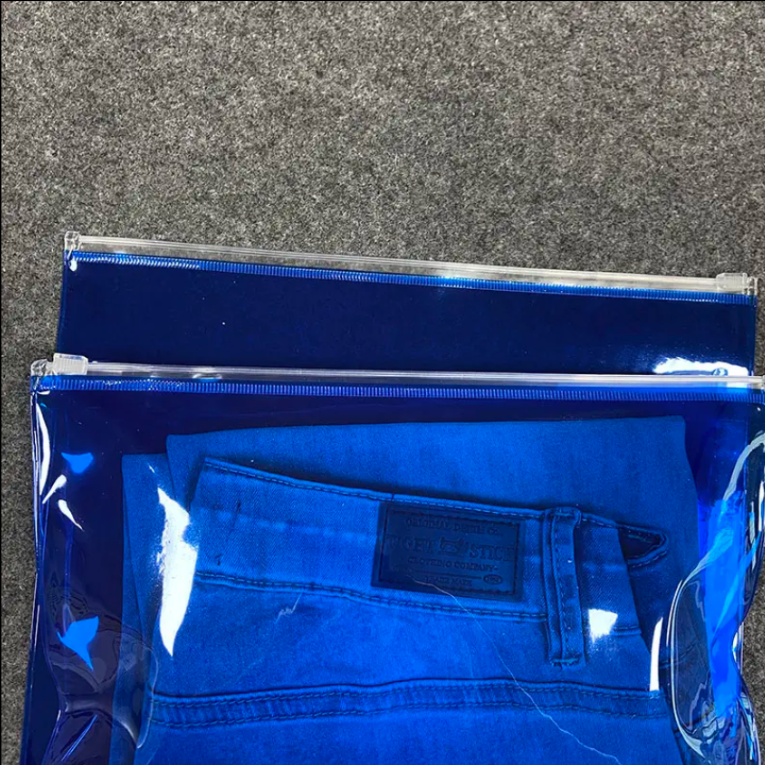 This transparent blue PVC slider bag combines functionality with brand appeal, making it an ideal choice for packaging clothing, accessories, or promotional items. With a smooth slider closure and a durable body, it protects contents from dust and moisture while offering full customization for branding needs.