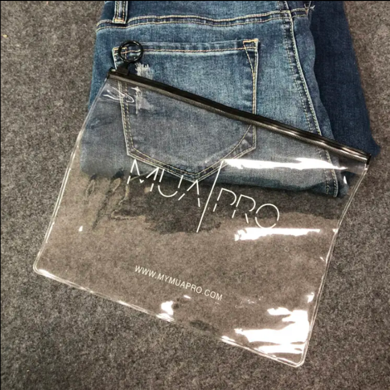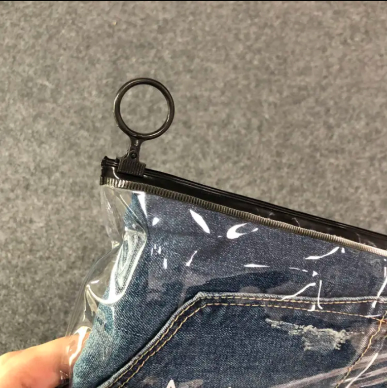 This clear PVC zipper bag offers durability and visibility, ideal for packaging jeans, shirts, sweaters, kidswear, and more. The zipper closure ensures easy reuse, while the hanging ring adds versatility for display. Fully customizable in size, thickness, and logo printing, this bag is a practical and stylish packaging solution for both retail and online brands.