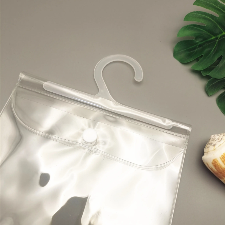 Custom Flat Transparent PVC Packaging Bag (with Hanger & Snap Button Closure)