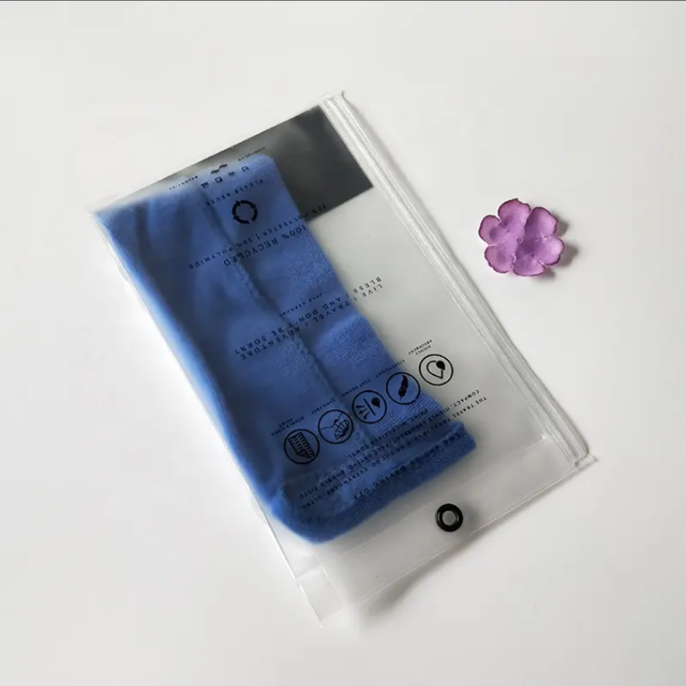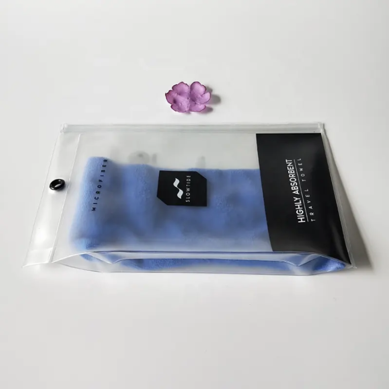 This matte PVC gusseted bag features a side-expanding structure for added space, making it ideal for thicker or multi-piece garments such as loungewear, underwear, or T-shirts. The matte finish enhances brand elegance, while the zipper closure and hanging hole offer both storage convenience and visual presentation. Fully customizable in size and printing, this bag is a versatile solution for retail and e-commerce packaging.