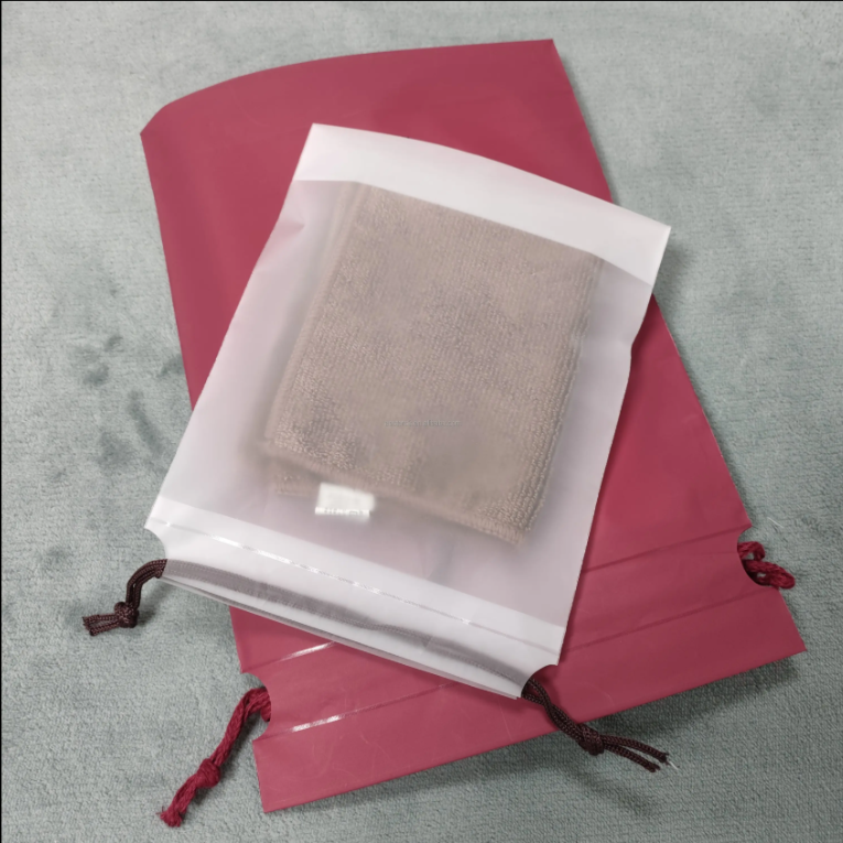 This matte PE drawstring bag offers a soft, lightweight texture with a sleek semi-transparent finish—ideal for presenting and protecting socks, underwear, and lightweight garments. The drawstring closure allows easy access and reusability. Supports logo printing and size customization, making it perfect for retail display or e-commerce fulfillment.