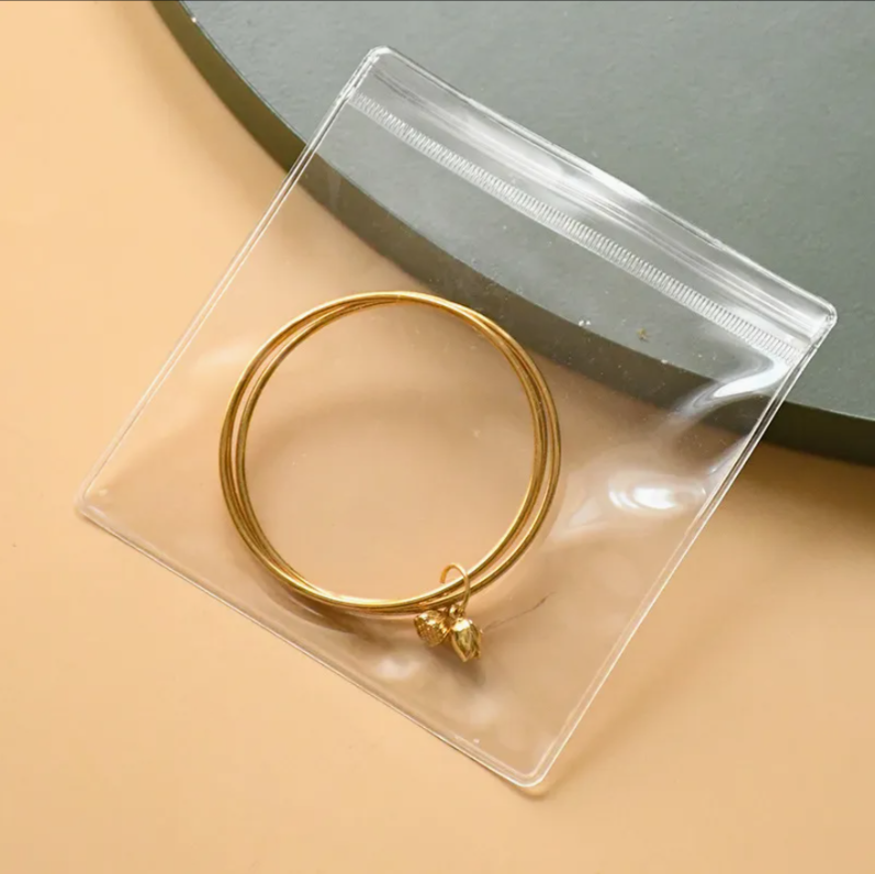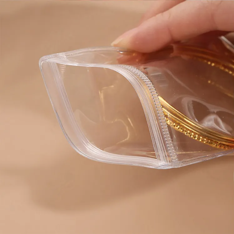 This press-seal bag is made of clear, durable PVC, perfect for packaging and showcasing small items such as jewelry, hair accessories, cosmetics, or electronic gadgets. The press-to-close design allows for easy repeated use, and can be upgraded to zipper or insert closures. Logo printing and custom sizing are available, making it a practical choice for both e-commerce and in-store presentation.