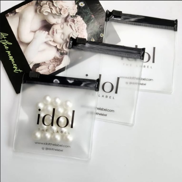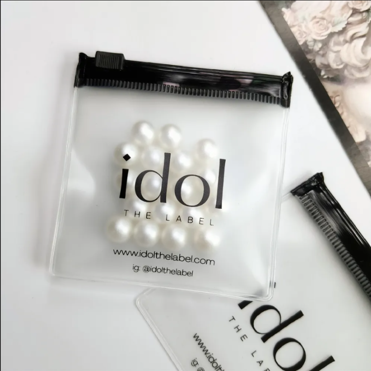 This matte PVC zipper bag with black top seal delivers a sleek and stylish look. Its durable and flexible construction is perfect for packaging accessories like jewelry, hair clips, earphones, and other small items. With full support for custom sizes and logo printing, it’s a practical solution for branding and e-commerce needs.
