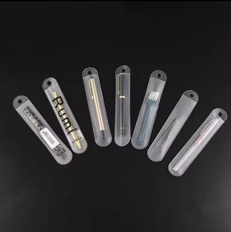 This open-top pouch is made from flexible matte EVA, featuring a lightweight, dust-resistant, and reusable structure. Designed without a closure for easy access, it includes a hanging hole for efficient retail display. Perfect for slender items such as pens, tools, and small accessories.