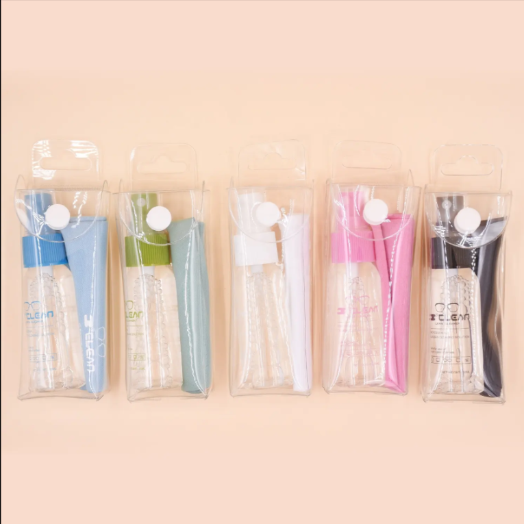 This clear PVC pouch features a structured, stand-up design with a secure snap-button closure and a Euro-style hanging hole. It's perfect for organizing pens, makeup brushes, or accessories while enabling retail display and easy identification of contents. Fully customizable in size, color, printing, and hanging type, this pouch offers a smart solution for both packaging and display.