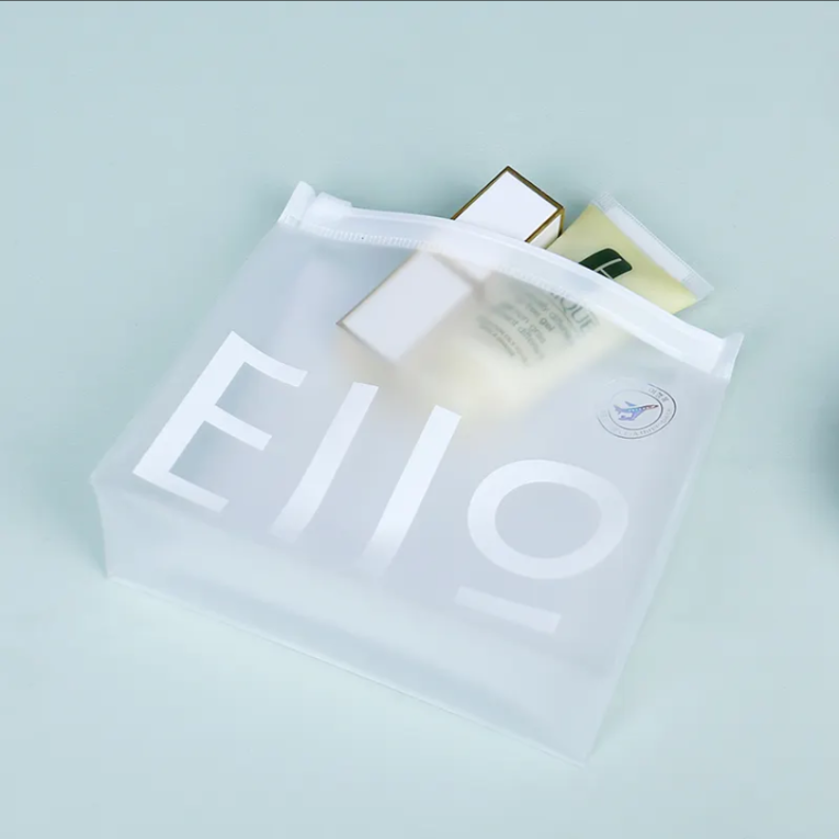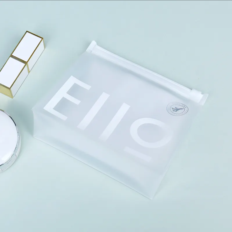 This frosted PVC cosmetic bag features a zipper closure and a soft yet durable finish, making it perfect for storing travel bottles, personal care items, and beauty accessories. Its minimalist design and full customization options make it an excellent choice for retail or promotional use.